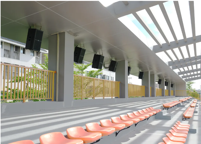 訓(xùn)練場(chǎng)地 本項(xiàng)目訓(xùn)練場(chǎng)地分為三個(gè),在系統(tǒng)設(shè)計(jì)期間,考慮到三個(gè)場(chǎng)地的設(shè)計(jì)結(jié)構(gòu)基本相同,最終采用相同的訓(xùn)練場(chǎng)館擴(kuò)聲系統(tǒng),使得整個(gè)深圳市青少年足球訓(xùn)練基地?cái)U(kuò)聲系統(tǒng),無論是從視覺上還是聽音效果上,都達(dá)到了完美的風(fēng)格和諧統(tǒng)一。 訓(xùn)練場(chǎng)地一和訓(xùn)練場(chǎng)地二的主擴(kuò)聲系統(tǒng)采用了32只MISSION的MSW系列全頻防水音箱。兩個(gè)場(chǎng)地各采用了16只MSW9012F和MSW9015F的防水線陣系統(tǒng),分布懸掛于兩個(gè)場(chǎng)地觀眾席上方覆蓋全場(chǎng),各搭配8臺(tái)MI1300的功率放大器,將MSW系列全頻防水音箱性能發(fā)揮到極致。 訓(xùn)練場(chǎng)地三采用了16只MSW9012F全頻防水音箱固定安裝于墻頂,MSW系列的安裝方式非常靈活,可根據(jù)不同的項(xiàng)目情況進(jìn)行靈活安裝,適合各類墻面安裝應(yīng)用,同時(shí)搭配8臺(tái)MI1300的功率放大器,使其聲音能量均勻覆蓋聽音區(qū)。