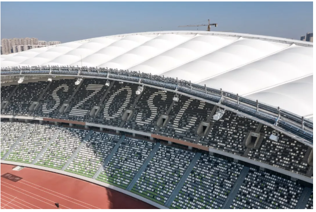 蘇州奧林匹克體育中心體育場是迄今為止中國第一座馬鞍形單層索膜結構屋頂設計的體育場,通常則為鋼架結構,這一次的特殊結構意味著只能借助全場40個索頭拉住膜。