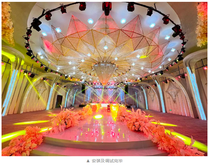 作為一家星級藝術宴會酒店,宴會禮堂功能定位相對較高,希望二樓宴會廳、三樓宴會禮堂均能滿足婚宴、壽宴、生日宴、升學宴、喬遷宴、尾牙宴、大型會議及年會慶典等功能性使用需求,因此對音響擴聲設備的品質也有著嚴格的高要求,基于酒店方要求,擴聲系統設計團隊從前期的設計,現場勘察,溝通,方案修改,定方案,設備安裝,擴聲系統調試及驗收完成等,各個環節都非常嚴謹及重視。