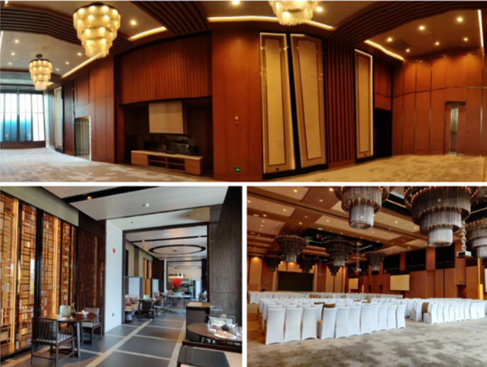主題為“絲綢之路”的小宴會(huì)廳位于酒店一樓,可分合式的宴會(huì)廳,能夠根據(jù)使用需求任意組合布置,滿(mǎn)足餐飲、會(huì)議、宴會(huì)等多種場(chǎng)景。現(xiàn)在的擴(kuò)聲系統(tǒng)采用EV 8寸吸頂,由AEV的DPA系列內(nèi)置DSP數(shù)字功放以定阻模式驅(qū)動(dòng)。投影采用EPSON高清激光投影機(jī),根據(jù)安裝位置更換的不同的鏡頭,達(dá)到投影的最佳效果。