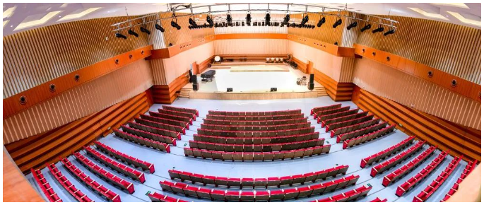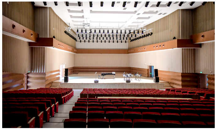 琴島音樂廳音響系統采自意大利進口品牌RCF音響,HDL有源線陣列系統,舞臺返聽為兩組ART300有源系列音箱。
