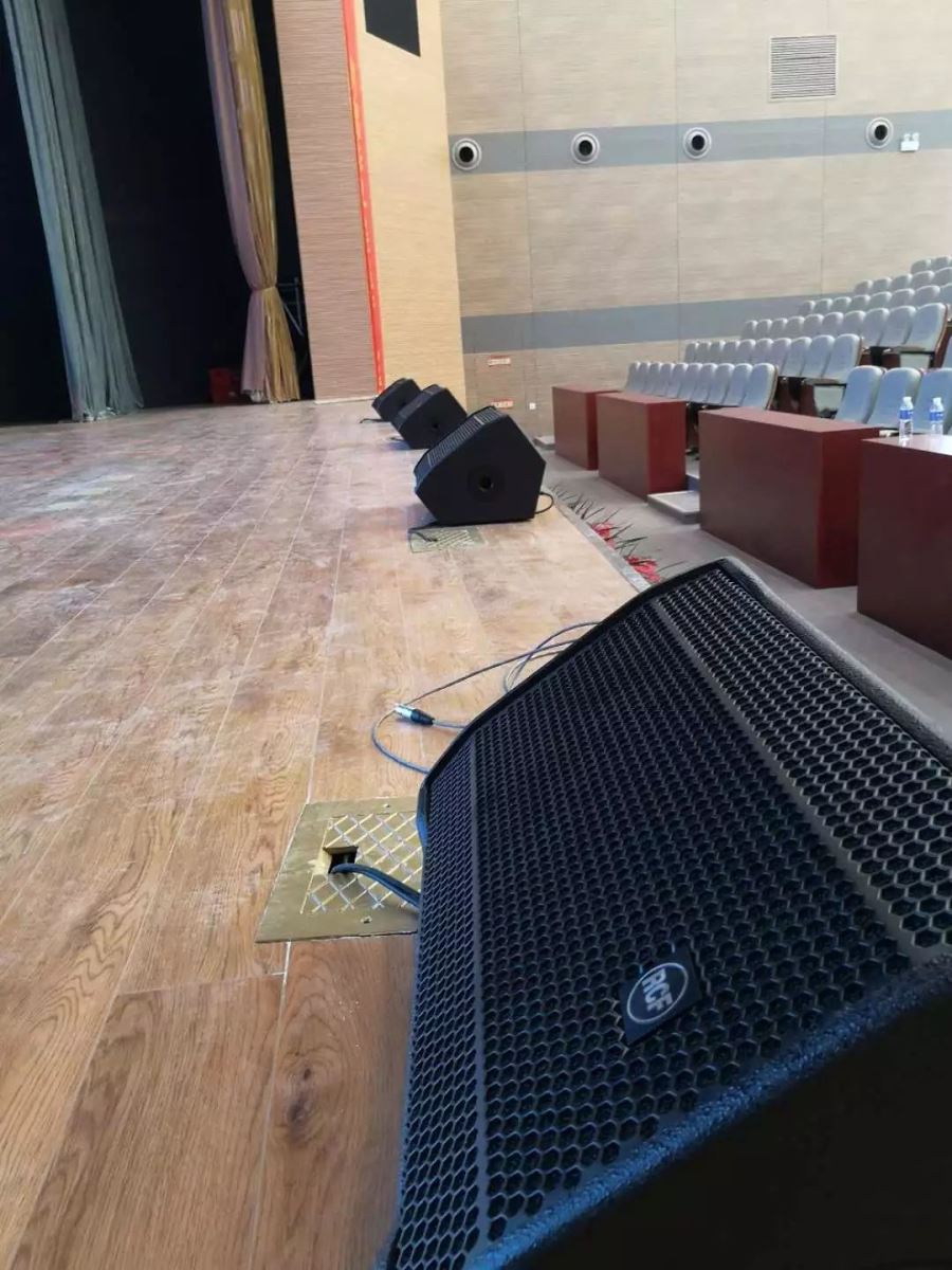 2只SUB8006-AS雙18”有源大功率超低音分別嵌于臺唇內部,在提供強有力的低音效果同時保證了整體的美觀度。臺唇為6只ART708-A兩分頻音箱,舞臺返聽系統由4只ST12-SMA組成。為此次70周年慶典活動榮譽出聲,保障了校慶大會的順利召開!當然也為學校舉辦的文藝演出、頒獎等活動提供了無與倫比的擴聲效果和重要“角色”當擔!