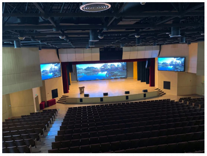 校區大禮堂是學校舉行會議、學術報告、培訓活動以及慶典演出等的綜合用途廳堂。為滿足使用要求,在禮堂配置了包括如下系統:擴聲系統、燈光系統、視頻系統、錄直播系統以及會議中控系統等。項目自投入使用以來,承接了多場活動,包括:家長會、高考動員大會、教師節演出等。
