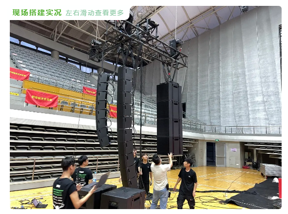 緊湊的排列不僅提高水平聲控指向又控制了垂直方向的聲擴(kuò)散,既能有良好的聲場(chǎng)覆蓋又不超重,非常適合這種有吊掛承重限制的體育場(chǎng)館。