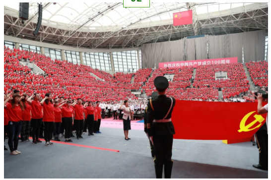 昂揚(yáng)的歌聲通過EV音響系統(tǒng)撼動(dòng)了在場(chǎng)所有人的心靈,將主題黨日活動(dòng)推向高潮。活動(dòng)最后,在100位新入黨黨員接力下,一面黨旗在內(nèi)場(chǎng)緩緩展開。這面黨旗在復(fù)旦飄揚(yáng)了一百年,象征著共產(chǎn)黨人的精神和力量,是復(fù)旦人的信仰和方向。