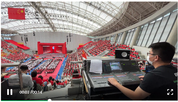 他還說道:這次演出主要以語言類擴(kuò)聲為主,對(duì)聲音清晰度要求比較高,首先是場(chǎng)館建聲條件較好,然后是喇叭出來的清晰度也很高,我不清楚設(shè)計(jì)原理,就感覺喇叭的人聲表現(xiàn)非常好,指向性也很強(qiáng),喇叭后區(qū)做的很干凈,同時(shí)12個(gè)領(lǐng)夾話筒在舞臺(tái)上朗誦擴(kuò)聲都能輕松把控。
