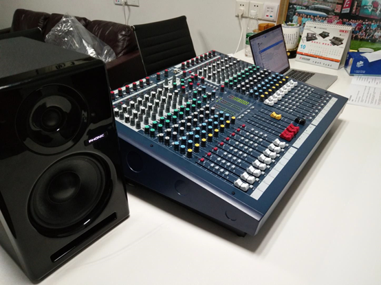 圖14:看了那么久,現(xiàn)在連接起來(lái)試聽(tīng)一下,搭配的是PHONIC 8A黑色鋼琴漆監(jiān)聽(tīng)音箱,輸入方式選擇了手機(jī)線路(插的是平衡話放接口)輸入和電腦USB線直接連接臺(tái)子自帶聲卡的數(shù)字輸入兩種傳輸方式。音質(zhì)一如前幾代一樣完美,且聲音也非常干凈,離解析度這么高的監(jiān)聽(tīng)音箱這么近,沒(méi)有聽(tīng)到噪音,臺(tái)子的線路設(shè)計(jì)及工藝把控還是不錯(cuò)的。