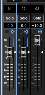 當(dāng)我把第三個(gè)推子的音量拉大時(shí),由圖的GR表可知,第三個(gè)通道所分享到的增益隨著音量的增加而增加。