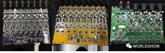通過上述測試對比,我們可以基本判斷,在各項性能上,C的指標最高,A其次,B型號最低。這些指標對用戶的意義是什么呢?——是音質的差別,而這背后是電路設計和電路元器件的選用上差別。對于數字調音臺來說,話放的電路設計和元器件選用,A/D、D/A轉換芯片,這些很大程度上決定了其性能。入門級的調音臺為了實現大眾化的價格,往往不得不在音質和成本之間折中。我們分別將手頭的3個型號的調音臺的進行拆機,分別看看其電路設計和元器件用料。