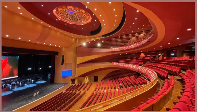 作為特大型甲等劇場,珠峰大劇院總建筑面積約為3萬平方米,觀眾廳設有池座、一層樓座和二層樓座共三層坐席,可容納約1600名觀眾,因此劇院所需聲音覆蓋的面積很大,聲場均勻度成為我們系統設計調試的一大挑戰。旅游創意產業園區內標志性建筑物,大劇院地處。