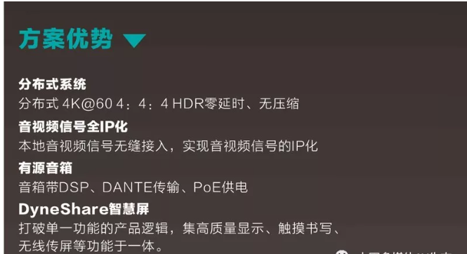 現代型會議室最基本的用途是開圓桌討論會議、視頻會議、專題匯報會等。因此需要滿足會議語言類的擴聲和視頻顯示的功能。同時如果作為分會場使用時需要滿足把主會場的音視頻信號實時的發送到會議室來。