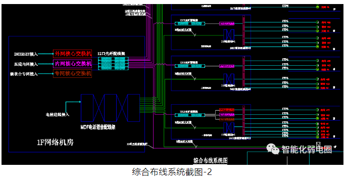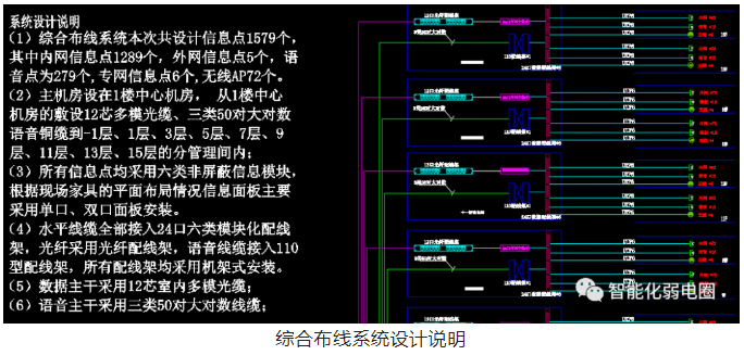 綜合布線是智能化弱電系統(tǒng)的基礎(chǔ),包含工作區(qū)子系統(tǒng)、水平子系統(tǒng)、管理間子系統(tǒng)、垂直干線子系統(tǒng)、設(shè)備間子系統(tǒng)、建筑群子系統(tǒng)。