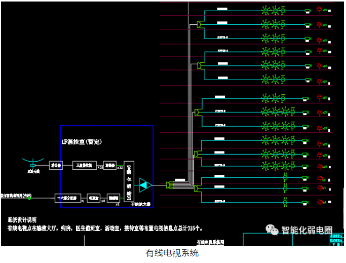 外部有線電視信號(hào)引入建筑物,用同軸電纜或網(wǎng)線實(shí)現(xiàn)建筑物內(nèi)傳輸、分配和交換信息的電視系統(tǒng)。
