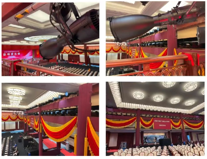 本次演出采用LED光源燈具,共計118臺,其中5度LED成像燈82臺、LED切割電腦燈8臺、LED平板燈10臺、LED四眼燈14支、LED搖頭電腦燈4臺。袁京男表示,依據前期燈具選型定制化參數,選用了廣州鑫皇實業有限公司(以下簡稱:鑫皇實業)的12臺全光普成像燈參數XH-J18-05K和70臺成像燈XH-17-05A,兩款燈具完全滿足音樂會對舞臺燈光照度、色度、顯色性等硬性需求,舞臺面光特意選擇了靜音款LED成像燈XH-17-05A,該產品具有靜音、投射距離遠、物理切扉、高色溫、線性調光、顯色指數高(Ra≥95 )等特色,其出色的表現為本次音樂會錦上添花。