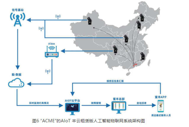 ACME的AIoT豐云人工智能物聯網系統(見圖6)已衍生出租賃版和工程版兩個系列,分別側重設備出入庫及倉儲數量位置等管理和演出工程中的設備使用管理,針對不同的用戶需求提供精細化服務。系統可實時監測燈具設備定位信息、運行狀態及歷史運行記錄、燈泡運行時長、信號強度等;異常信息可通過燈具上的自動傳感功能直接上傳,并自動派單給本地技術人員。