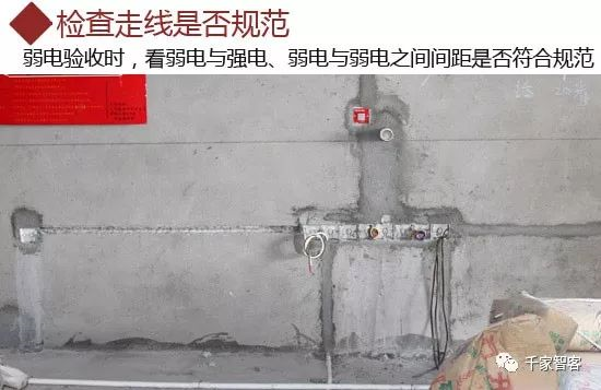 前面已經提過,弱電對電波非常敏感,抗干擾能力差,所以光靠護套線管保護還不能完全削減其與鄰近電波的反應。所以在鋪設電路時,弱電與強電、弱電與弱電之間如果水平間距過小,很容易造成日后信號互相干擾。驗收的時候注意檢查線管距離是否符合規定。