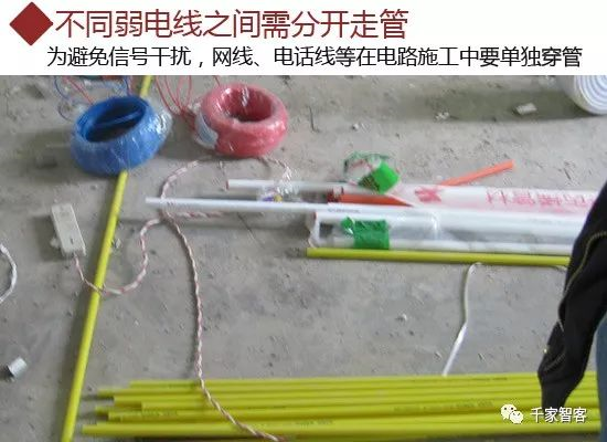 為避免信號干擾,網線、電話線、有線電視線等弱電在電路施工中要單獨穿管,不可穿在同一管內。
