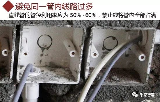 敷設時應視管內所穿導線數量的多少而變化,同一管內,不宜超過四根,禁止導線將管內空間全部占滿。直線管的管徑利用率應為50%~60%,彎管的管徑利用率應為40%~50%。