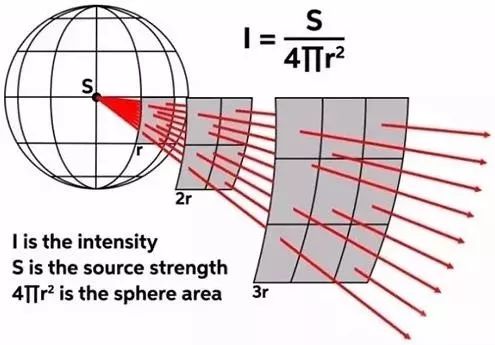 聲學(xué)中反平方定律的內(nèi)容是,聲強(qiáng)度的大小和聽音位置與聲源之間距離呈平方反比。其結(jié)果是聽音者距離點聲源的距離每增加一倍,聲壓衰減6dB。這是我們通常情況下使用的揚聲器的表現(xiàn),雖然實際和理論會有很多細(xì)微差別。