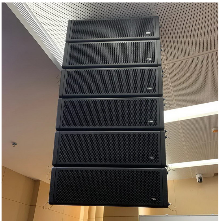 由于房間數量較多,根據每間的使用環境結合客戶需求及產品性能,最終為一層的學術報告廳、數字影像廳等共選用了20只C-208的8 "線性陣列音箱作為主擴聲系統,最大聲壓級高達135dB,所需的傾斜角度也擴張到了最大使用范圍,內部喇叭單元的安裝角度可滿足不同的場地使用需求,搭配C-15S的單15" 低頻音箱,該主擴系統安全穩定,操作簡易,系統結構更科學完善,是大型會議的品質之選。
