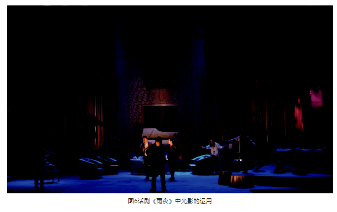 燈光是戲劇情感的暗示和延伸,利用燈光特有的光色、光影等語匯來推動劇情的發展,揭示人物內心情感變化。