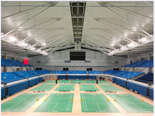 地下1層為地下車庫與設備用房,地上3層(局部夾層4層)為場館及看臺、座位等,建筑高度(含鋼結構頂)為29.14m,由比賽館、訓練館及其配套設施組成,是目前國內規模最大的高校體育館之一