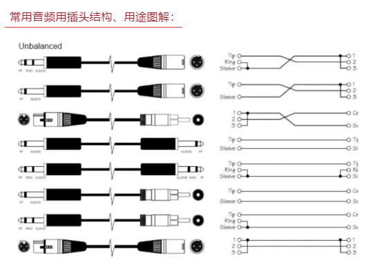 由于大部分用在擴(kuò)聲工程上的音源設(shè)備,本身輸出端采用非平衡式輸出,比如蓮花式輸入插座或大二芯插座,所以非平衡式連接只適合在距離較近的情況下用于音源設(shè)備與調(diào)音臺(tái)之間的連接。