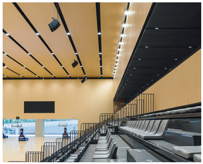 其中一層多功能綜合館,面積超過(guò)1200平方米,包含2000個(gè)坐席和3個(gè)籃球全場(chǎng),可以承辦中小型賽事和活動(dòng)。在擴(kuò)聲系統(tǒng)的選擇上,面臨著場(chǎng)館層面積大,層高深,混響時(shí)間長(zhǎng),設(shè)備選擇需要滿足大聲壓級(jí)、高靈敏度、適合長(zhǎng)距離投射和體積輕巧能減少高空懸掛的負(fù)荷,確保滿足極佳的指向性控制,保證音色的一致性,具備優(yōu)異的安全性和穩(wěn)定性。