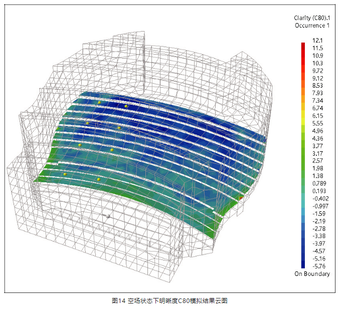 演奏廳觀眾廳音樂明晰度C80(空場):-3 dB~0 dB。