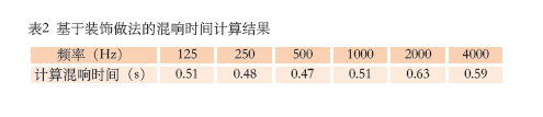 基于裝飾做法,初步計算的混響時間如表2所示。從表2可以看出,混響時間偏低,這會導致音質非常干澀,缺乏豐滿度。