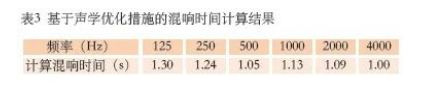 聲學優化后,混響時間計算結果如表3所示。