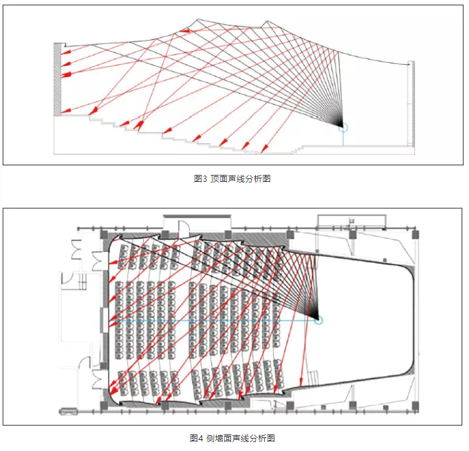 建筑體型優化方面,在空間建筑布局已定的情況下,通過裝飾手段優化建筑體型,為觀眾席提供充足的早期反射聲。